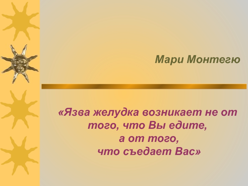 Слайд 36«Язва желудка возникает не от того, что Вы едите,