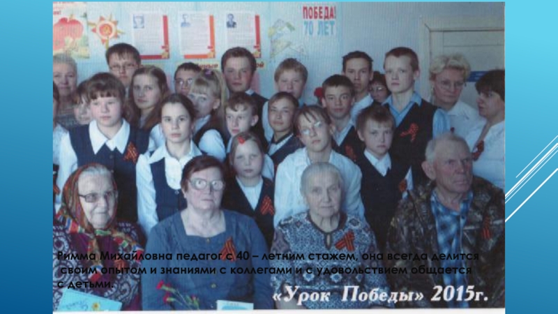 Слайд 35Римма Михайловна педагог с 40 – летним стажем, она всегда