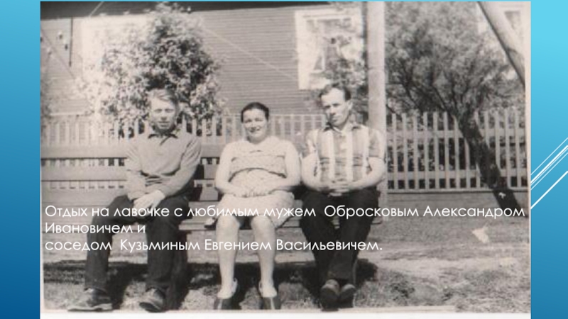 Слайд 6Отдых на лавочке с любимым мужем Обросковым Александром Ивановичем и