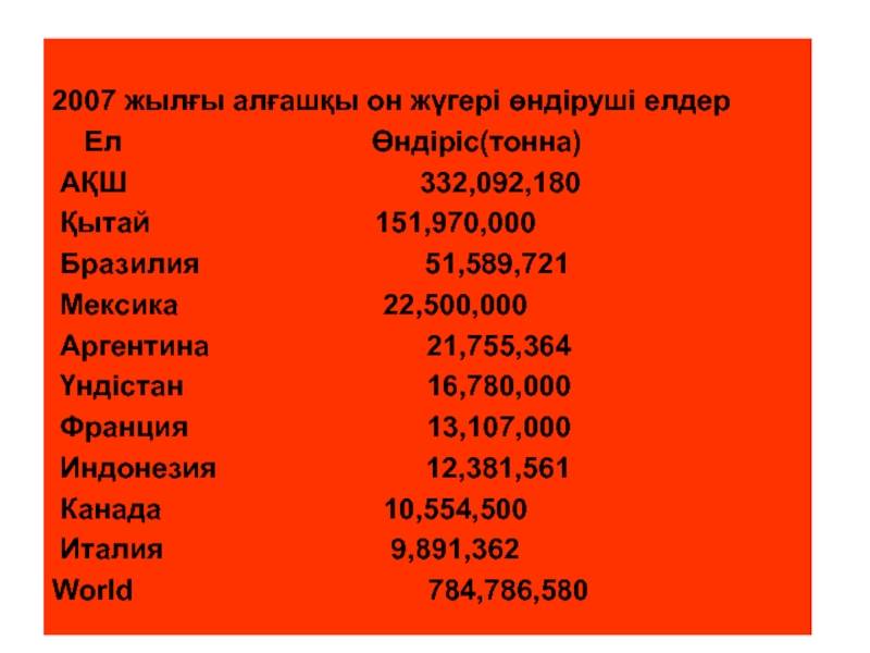 2007 жылғы алғашқы он жүгері өндіруші елдер  Ел