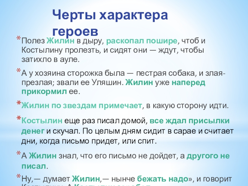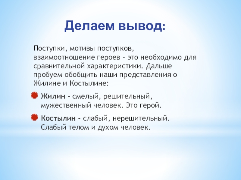 Костылин заботится только о себе, о своём благополучии, не знает что такое долг, верность в дружбе. Он безволен, безответственен, способен на подлость. Он не совершает поступка, не бежит из плена. Костылин не герой, он не способен на большой поступок.