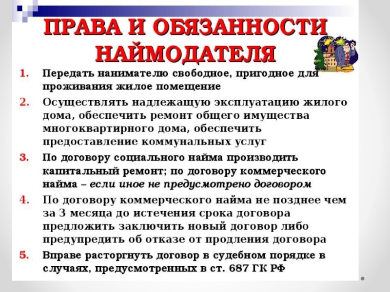 Слайд 21при рассмотрении иска наймодателя о расторжении договора социального найма жилого