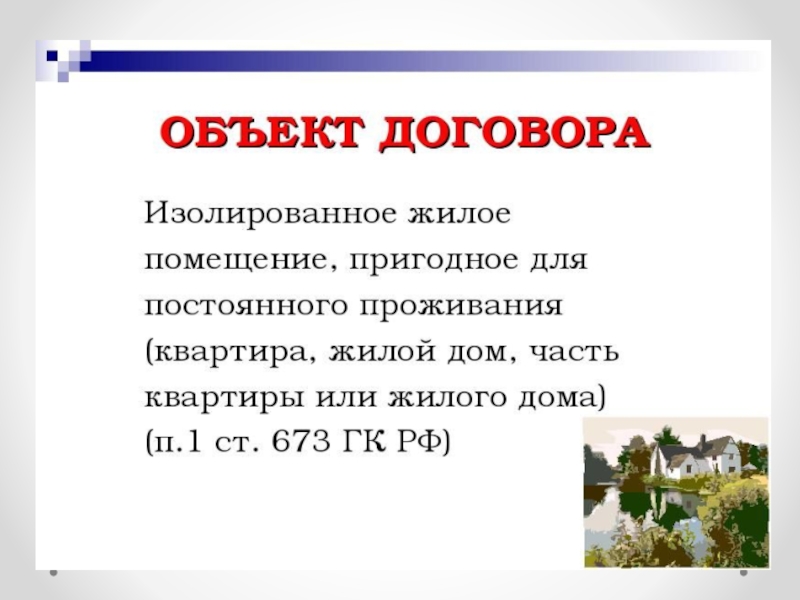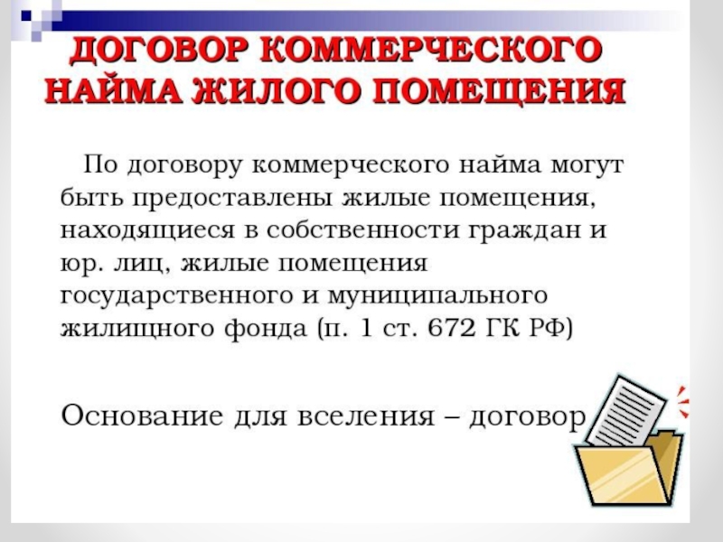 Слайд 24Договор найма жилого помещения жилищного фонда социального использования