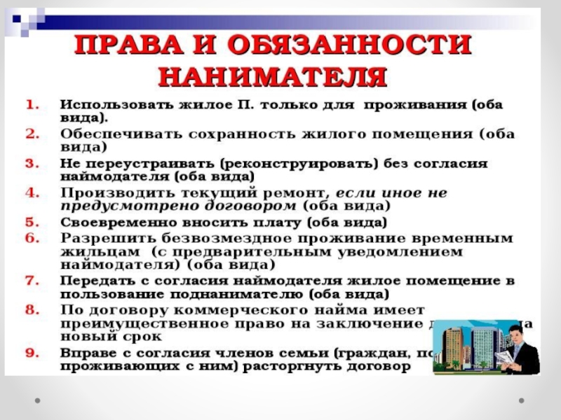Слайд 27В договоре найма жилого помещения жилищного фонда социального использования должны