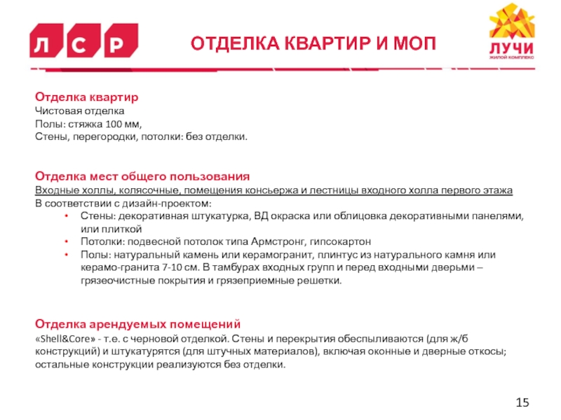 Слайд 15ОТДЕЛКА КВАРТИР И МОП