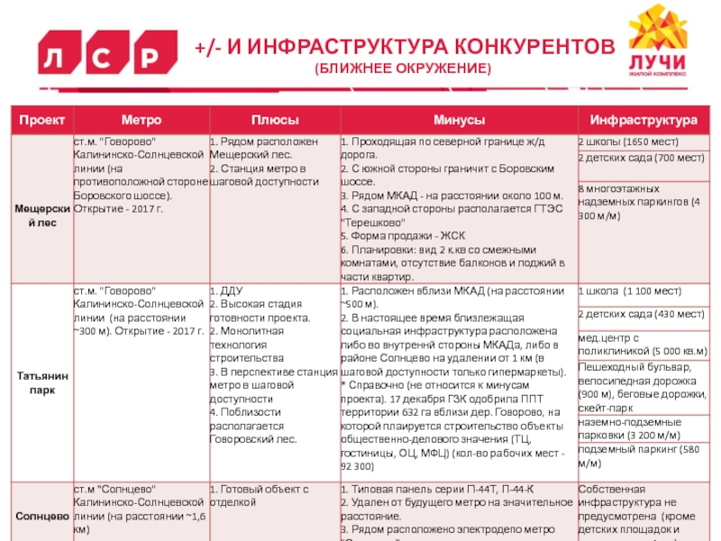 Слайд 20+/- И ИНФРАСТРУКТУРА КОНКУРЕНТОВ