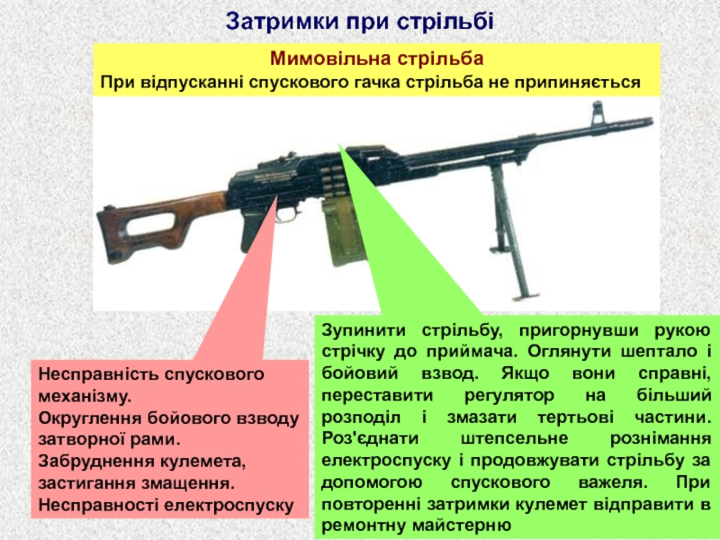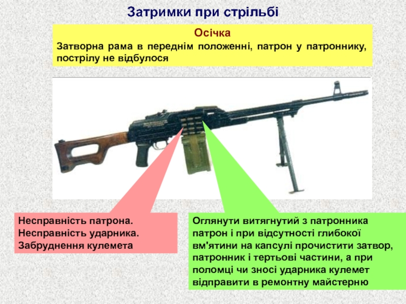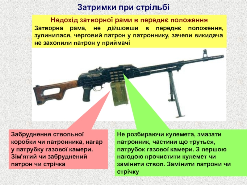 Затримки під час стрільби з кулемета і способи їх усунення.