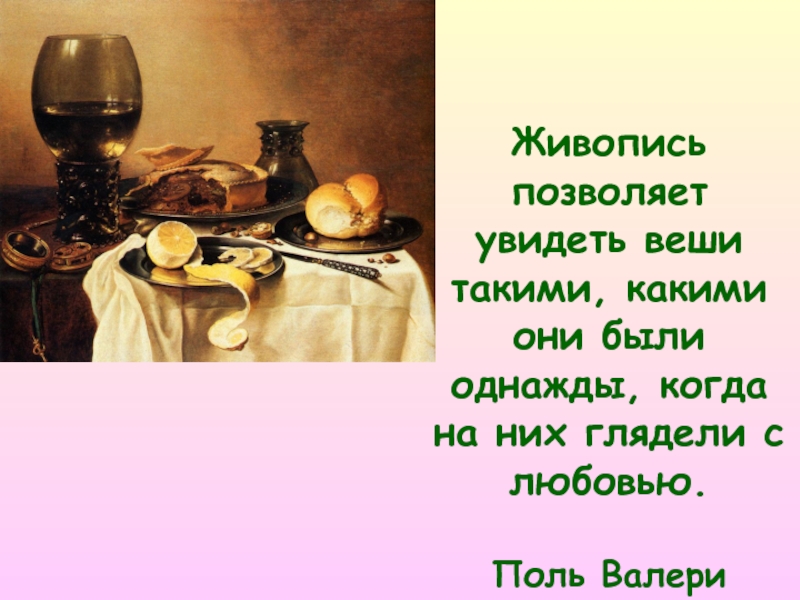 Живопись позволяет увидеть веши такими, какими они были однажды, когда на них глядели с любовью.Поль Валери