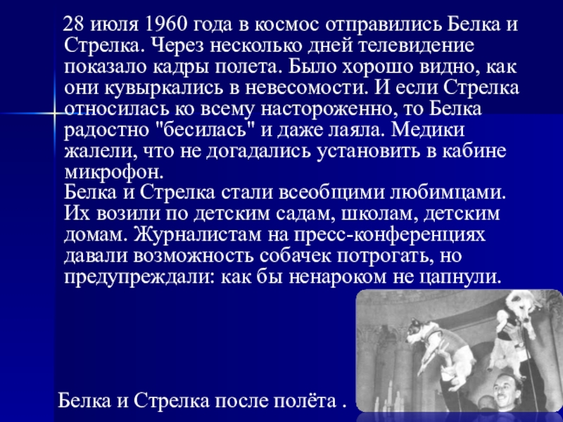 Белка и Стрелка после полёта .