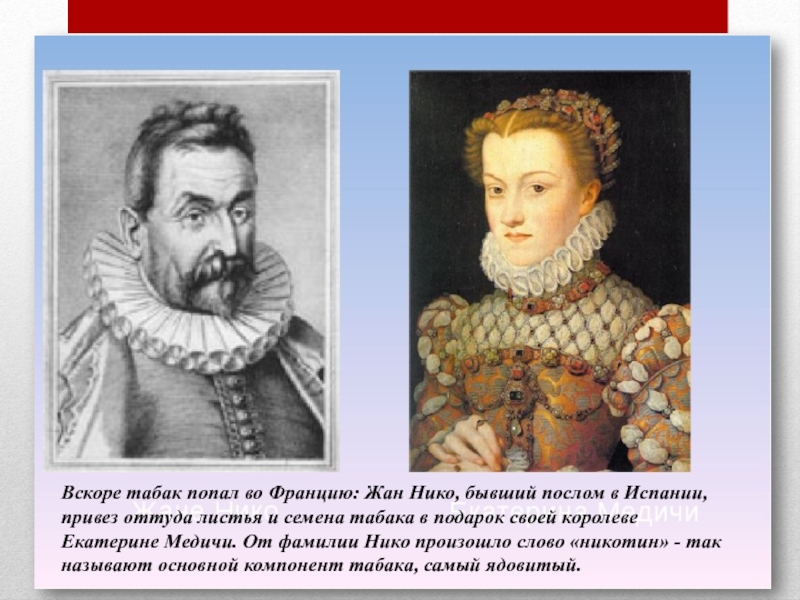 Слайд 7Вскоре табак попал во Францию: Жан Нико, бывший послом в
