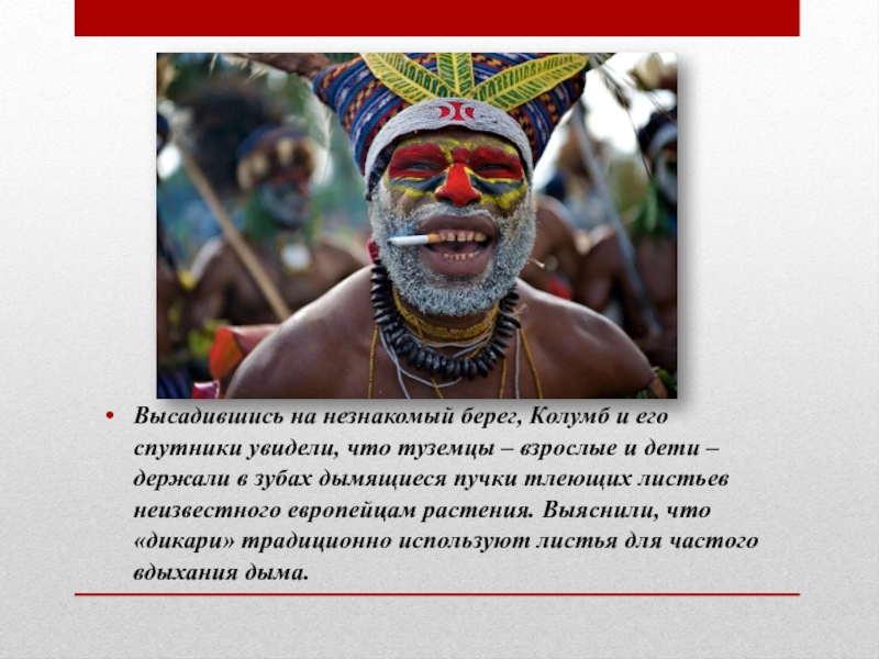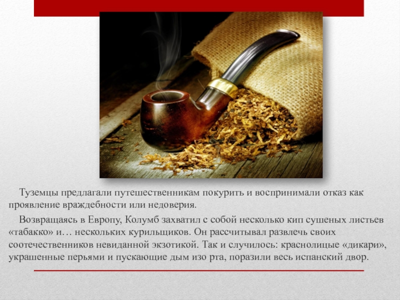 Слайд 6 Туземцы предлагали путешественникам покурить и воспринимали отказ как
