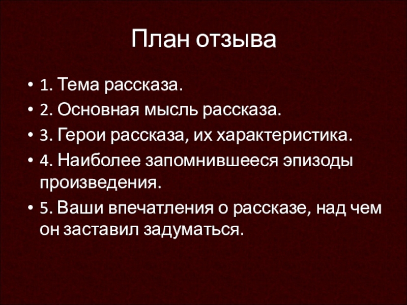 5. Ваши впечатления о рассказе, над