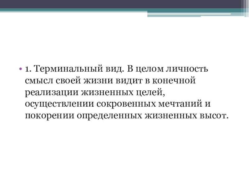 Слайд 161. Терминальный вид. В целом личность смысл своей жизни видит