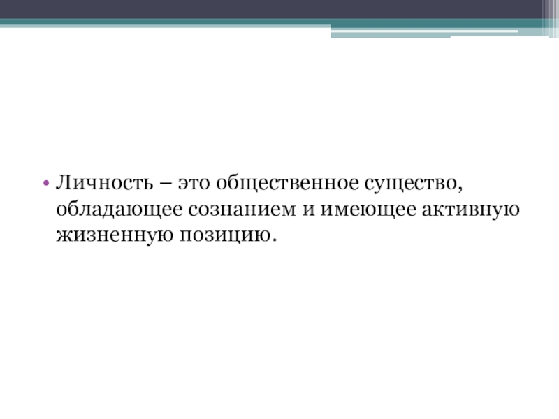 Личность – это общественное существо, обладающее сознанием и имеющее активную
