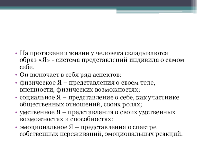 Слайд 6На протяжении жизни у человека складываются образ «Я» - система
