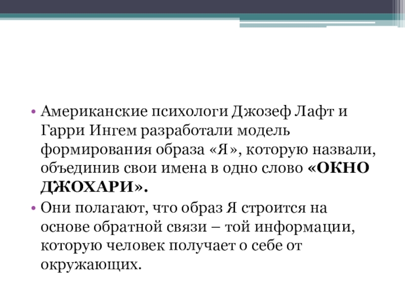 Слайд 9Американские психологи Джозеф Лафт и Гарри Ингем разработали модель формирования