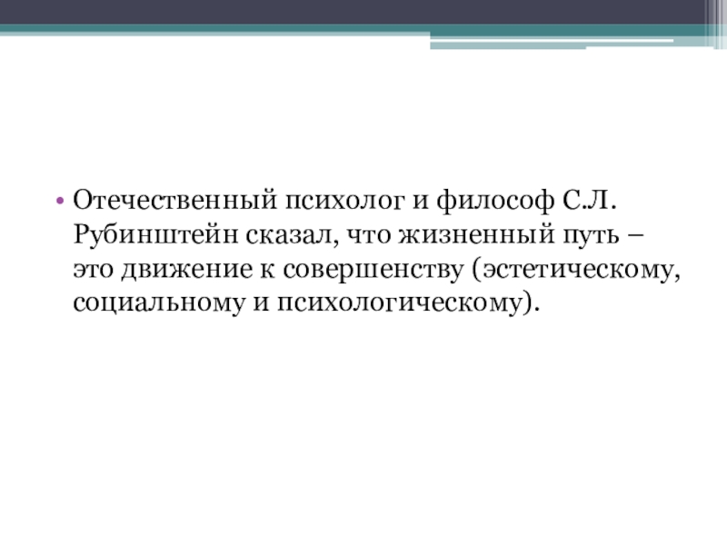 Слайд 27Отечественный психолог и философ С.Л. Рубинштейн сказал, что жизненный путь