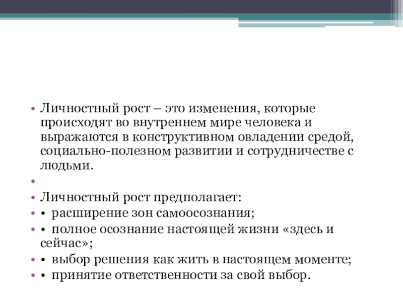 Слайд 29Личностный рост – это изменения, которые происходят во внутреннем мире