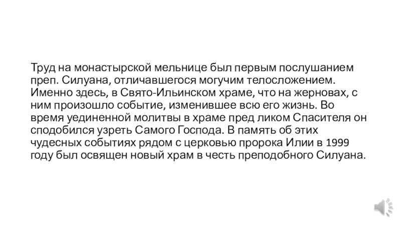 Слайд 8Труд на монастырской мельнице был первым послушанием преп. Силуана, отличавшегося