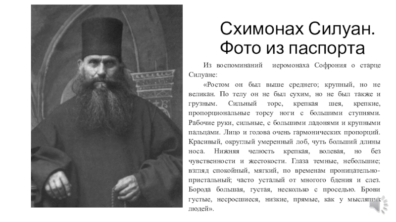 Слайд 10Схимонах Силуан. Фото из паспорта