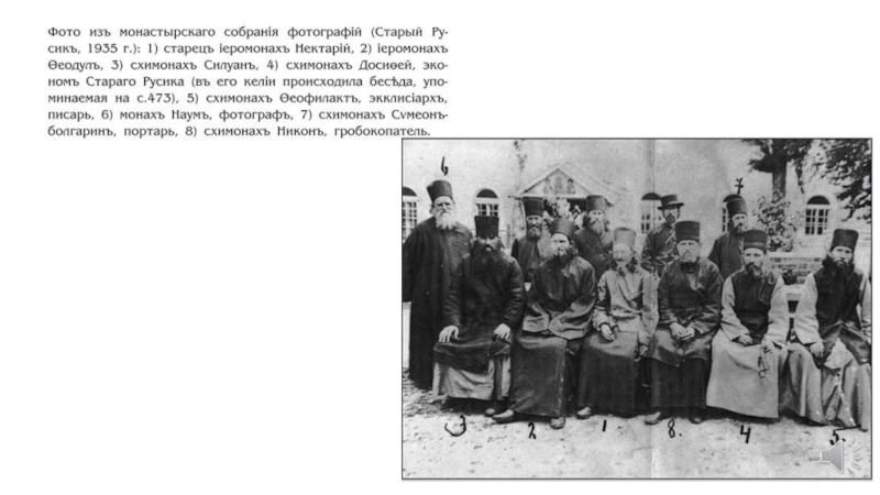 Слайд 11Учитель и ученик. Схимонах Силуан (1) и иеродиакон Софроний (3).