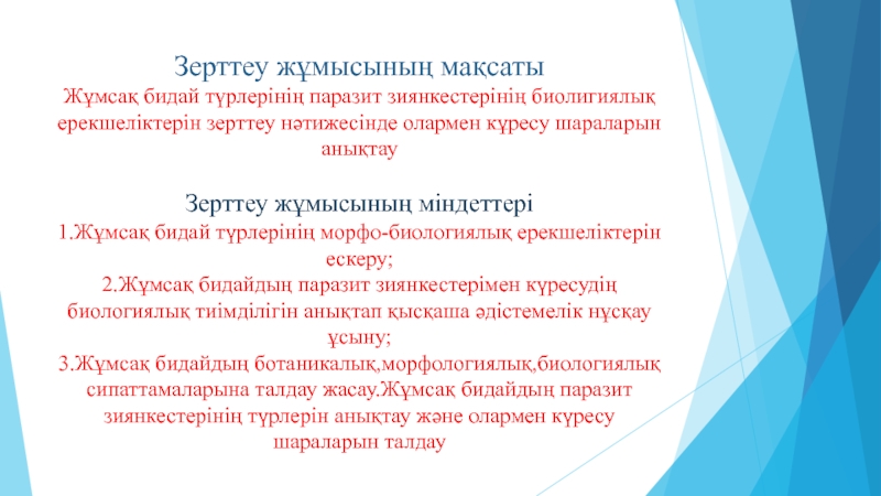 Слайд 1Жұмсақ бидай дақылдарының паразит зиянкестерімен күресу шаралары