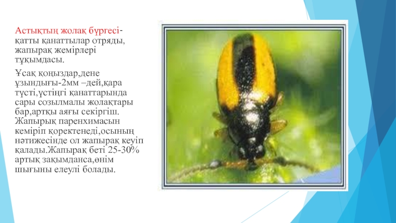 Слайд 8Астықтың жолақ бүргесі-қатты қанаттылар отряды,жапырақ жемірлері тұқымдасы.