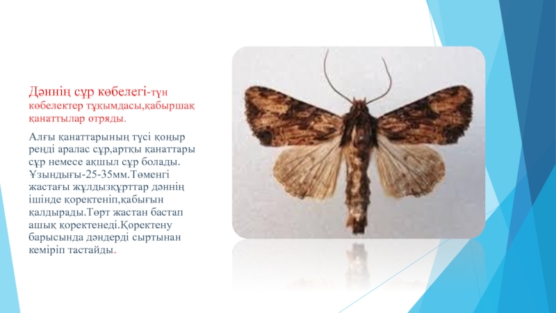 Слайд 6Дәннің сұр көбелегі-түн көбелектер тұқымдасы,қабыршақ қанаттылар отряды.
