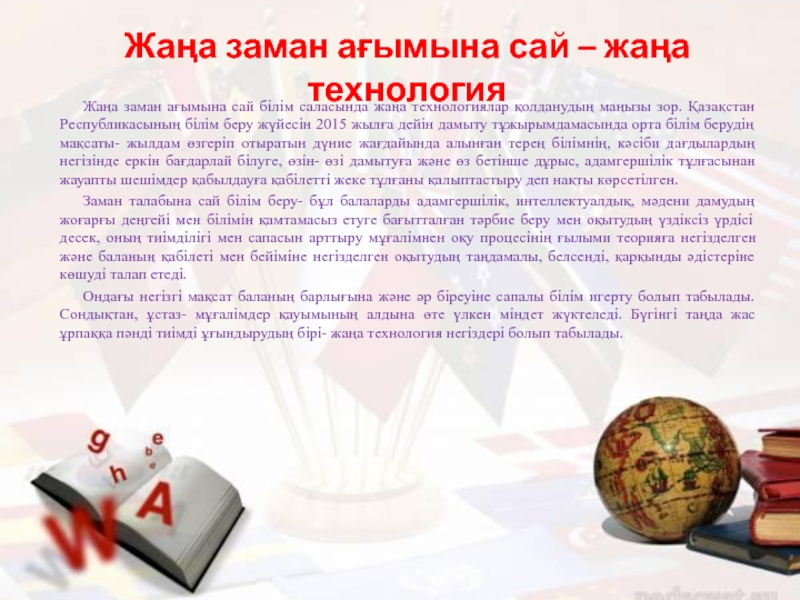 Слайд 5Жаңа заман ағымына сай – жаңа технология