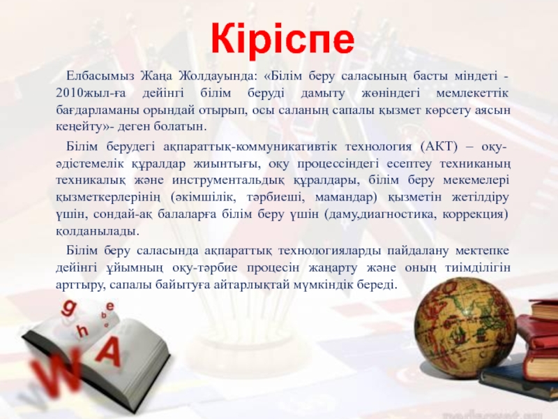 Елбасымыз Жаңа Жолдауында: «Білім беру саласының басты міндеті - 2010жыл-ға