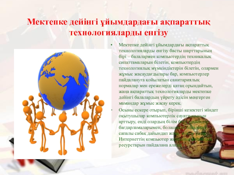 Слайд 9Мектепке дейінгі ұйымдардағы ақпараттық технологияларды енгізу