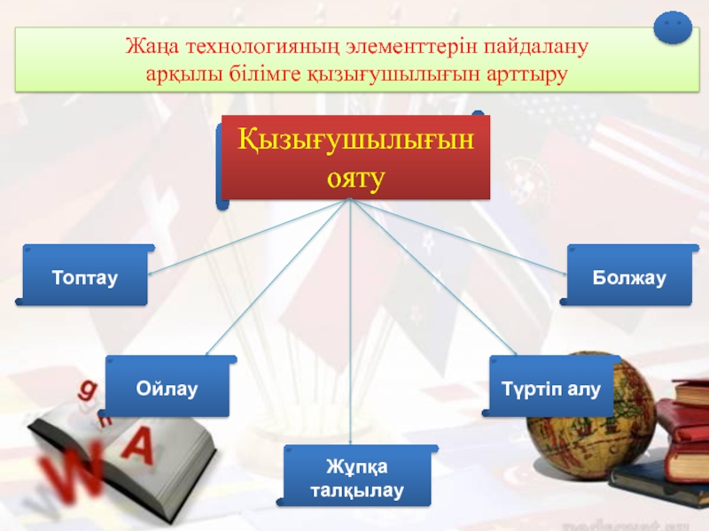 Слайд 13Жаңа технологияның элементтерін пайдалану