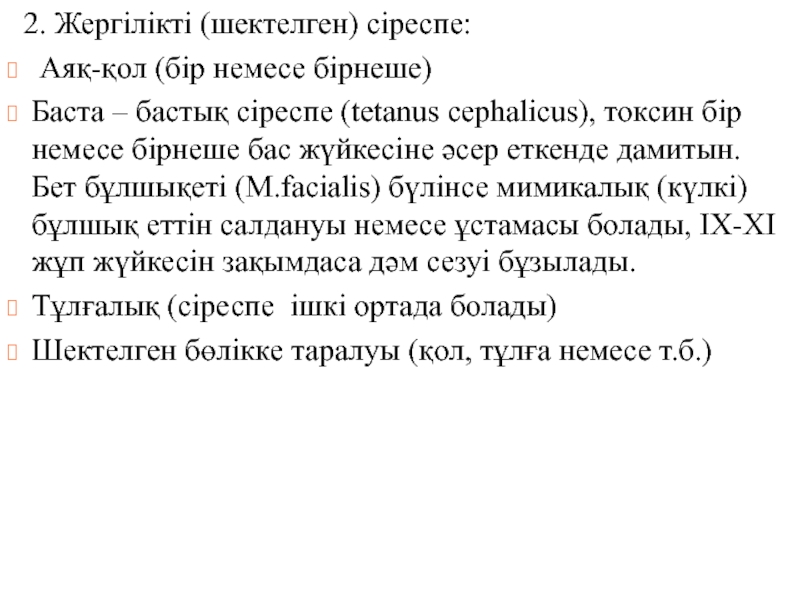 Слайд 7 2. Жергілікті (шектелген) сіреспе: