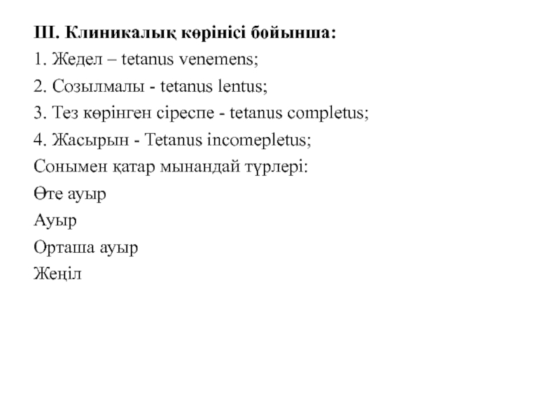 Слайд 8III. Клиникалық көрінісі бойынша: