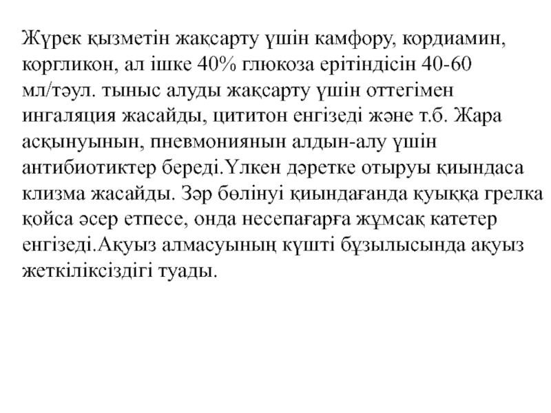 Слайд 41 Жүрек қызметін жақсарту үшін камфору, кордиамин, коргликон, ал