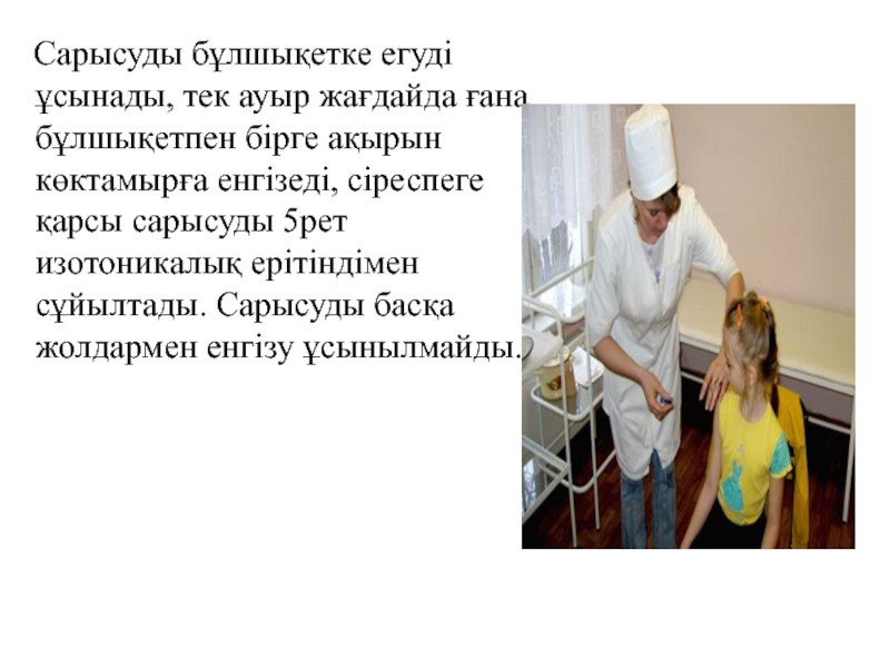 Слайд 36 Сарысуды бұлшықетке егуді ұсынады, тек ауыр жағдайда ғана