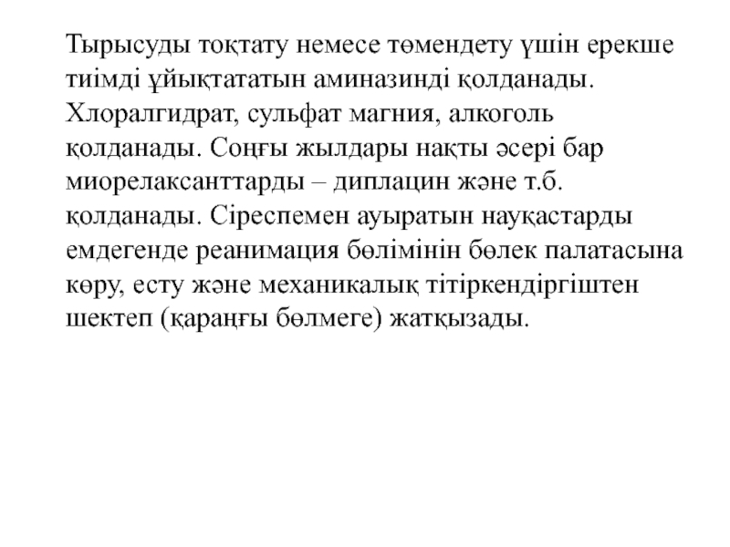 Слайд 32 Тырысуды тоқтату немесе төмендету үшін ерекше тиімді ұйықтататын
