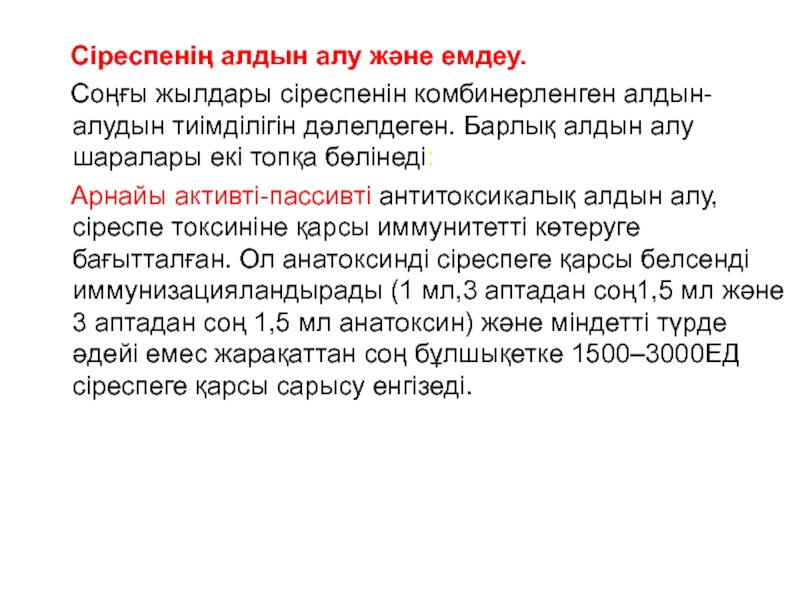 Слайд 27 Сіреспенің алдын алу және емдеу.