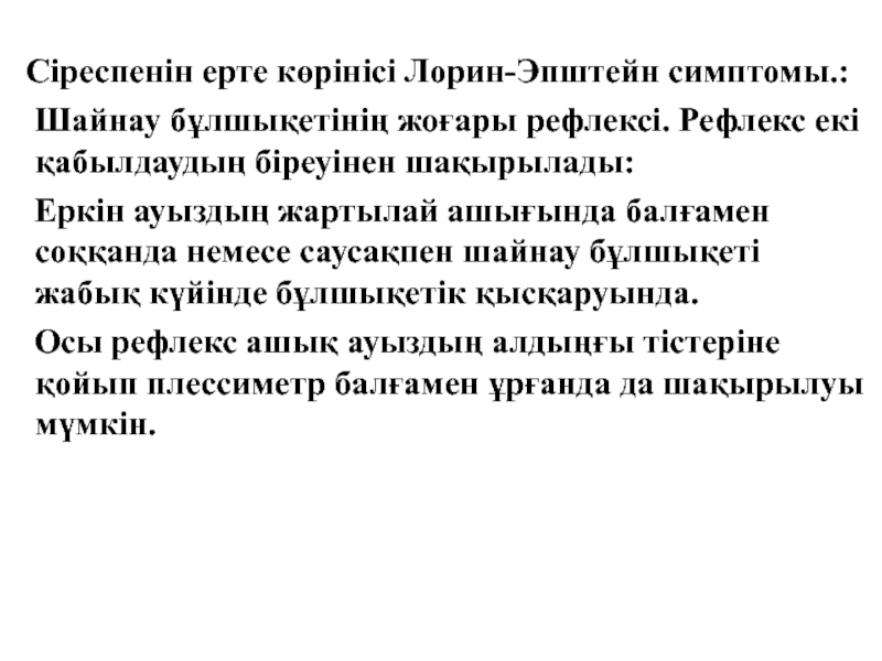 Слайд 25 Сіреспенін ерте көрінісі Лорин-Эпштейн симптомы.: