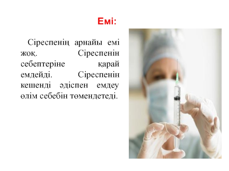 Сіреспенің арнайы емі жоқ. Сіреспенін себептеріне қарай емдейді.