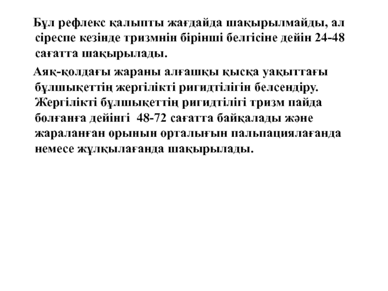 Слайд 26 Бұл рефлекс қалыпты жағдайда шақырылмайды, ал сіреспе кезінде