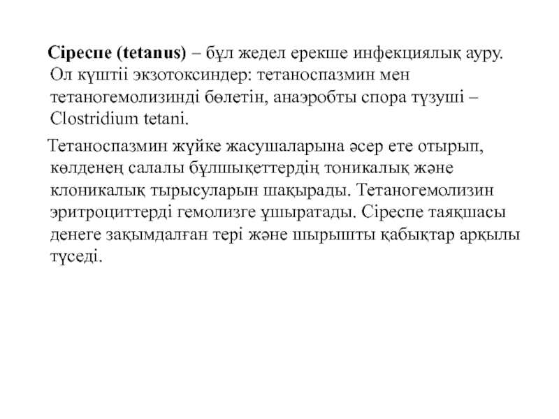 Слайд 2 Сіреспе (tetanus) – бұл жедел ерекше инфекциялық ауру.