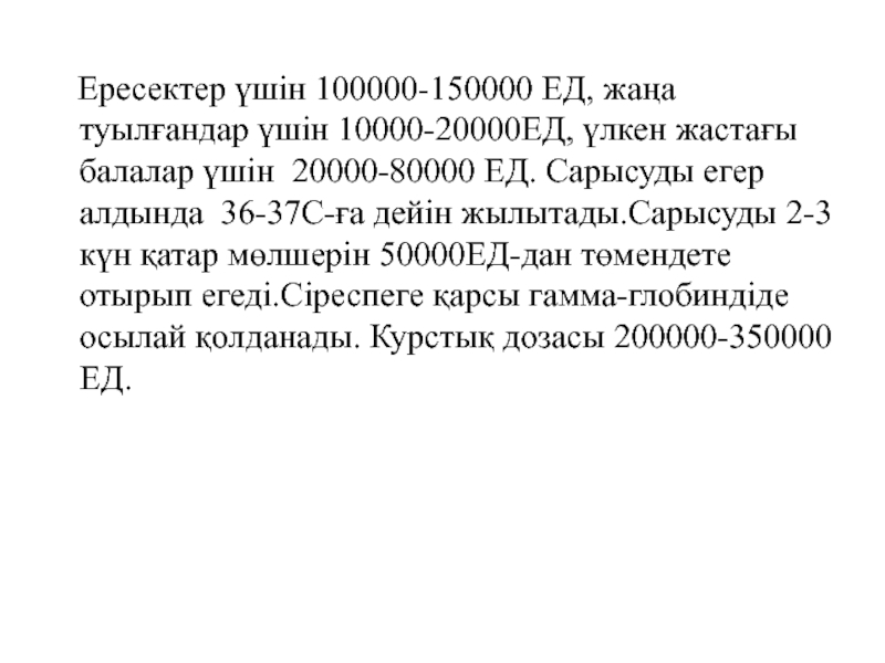Слайд 35 Ересектер үшін 100000-150000 ЕД, жаңа туылғандар үшін 10000-20000ЕД,