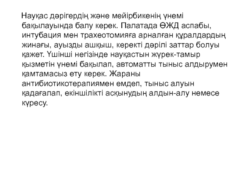 Слайд 33 Науқас дәрігердің және мейірбикенің үнемі бақылауында балу керек.