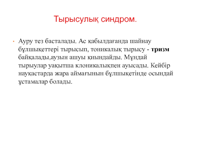 Слайд 11Тырысулық синдром.