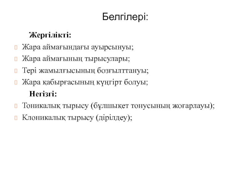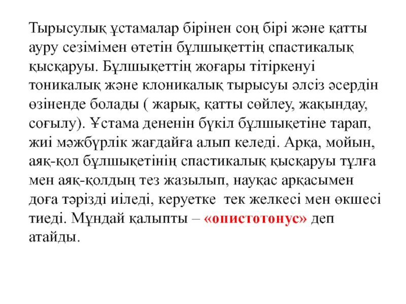 Слайд 14 Тырысулық ұстамалар бірінен соң бірі және қатты ауру
