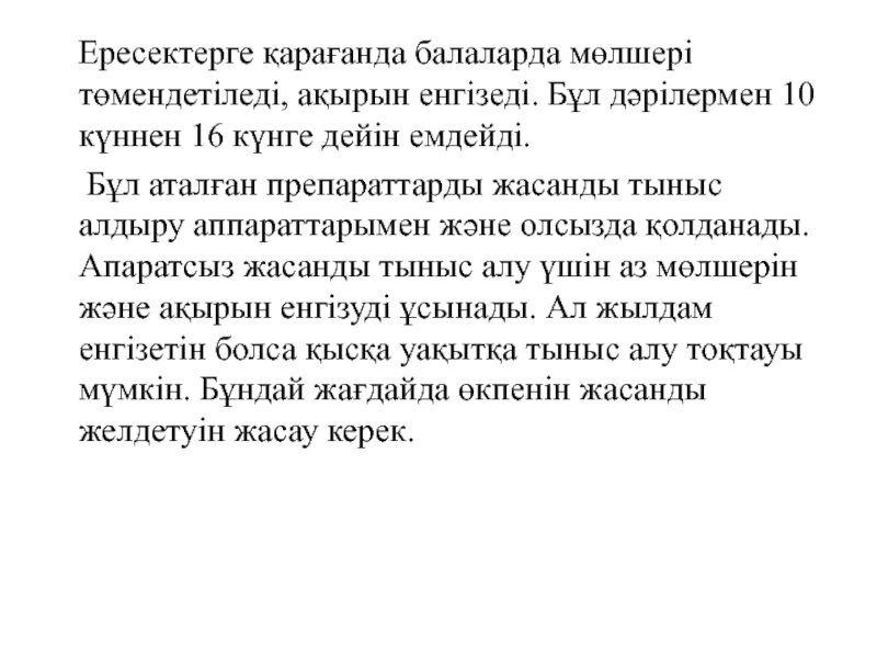 Слайд 40 Ересектерге қарағанда балаларда мөлшері төмендетіледі, ақырын енгізеді. Бұл