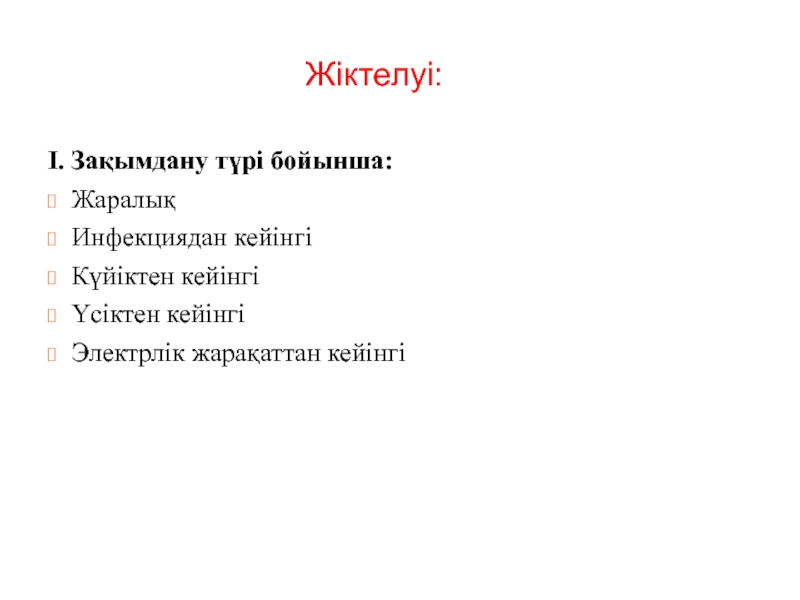 I. Зақымдану түрі бойынша: