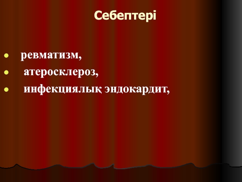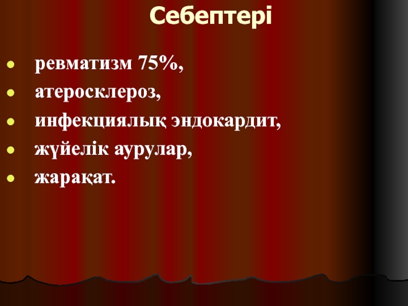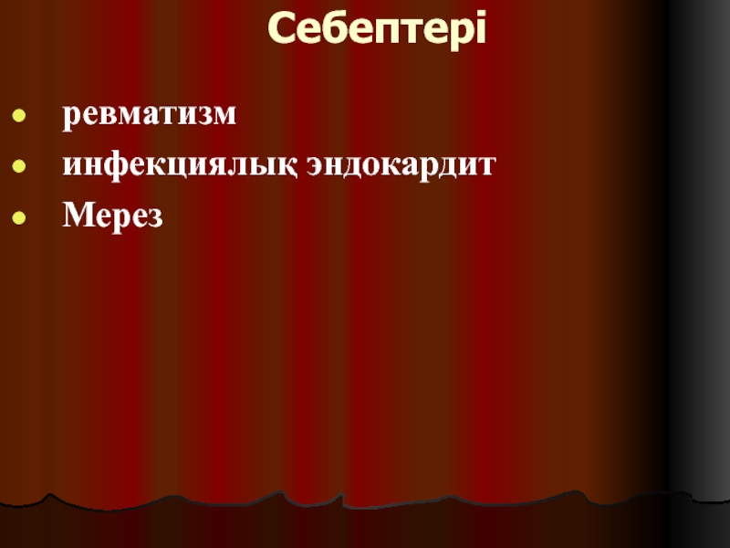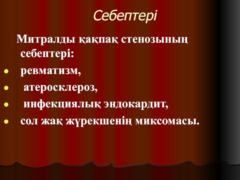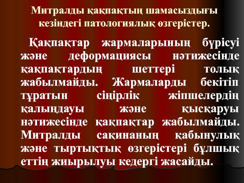 қалыңдауы және қысқаруы нәтижесінде қақпақтар жабылмайды. Митралды сақинаның қабынулық және тыртықтық өзгерістері бұлшық еттің жиырылуы кедергі жасайды.