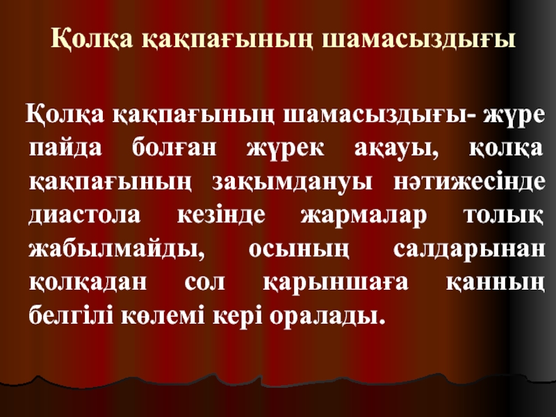 жабылмайды, осының салдарынан қолқадан сол қарыншаға қанның белгілі көлемі кері оралады.